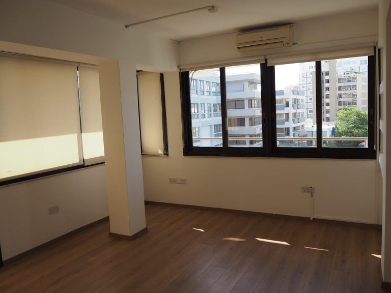 Ενοικιάζεται γραφείο μέσα στο κέντρο της πόλης, επαρχία Λευκωσίας, πρόσφατα ανακαινισμένο με 148 τ.μ. εσωτερικό χώρο και 23 τ.μ. βεράντες, στον 3ο όροφο πολυκατοικίας. Διαθέτει μπάνιο, κουζίνα και σύστημα κλιματισμού σε όλους τους χώρους. Τιμή ενοικίασης 1,350 ευρώ μηνιαίως συν 50 ευρώ κοινόχρηστα.