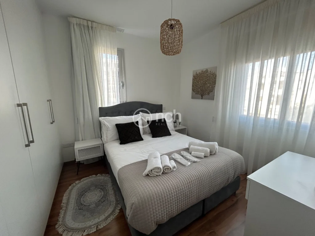This amazing apartment consists of 102m2 of internal areas plus 19m2 of covered verandas. It has thee bedrooms one of which is en-suite, guest WC, spacious living room, parquet flooring, split units, covered parking and private storage room. In addition, it comes fully furnished with electrical appliances.