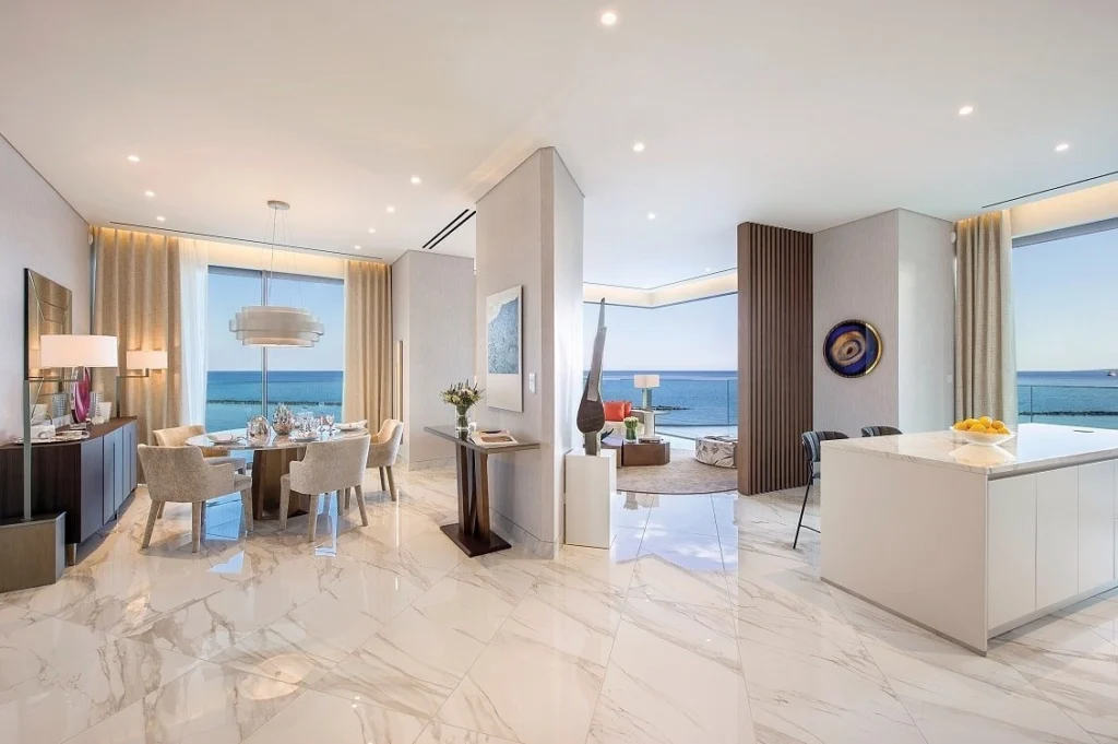 Apartments for sale in an elite complex on the beach, in the Neapolis area, Limassol. The project consists of three shining towers and a lively square located between them – an ideal place to live, work and relax against the backdrop of a picturesque panorama of the Mediterranean Sea. The complex, which has been worked on by world-class architects, designers and developers, offers a unique lifestyle combining fabulous seaside living opportunities with sophisticated urban comfort. Thanks to a combination of personalized services and facilities such as swimming pools, a bar at the swimming pool, a tennis court, a children’s playground and gardens, here you will feel yourself in a Mediterranean resort atmosphere, being just a few minutes from the city’s seaside promenade.Project features: 24-hour concierge service and security. Private underground parking. Tennis court. Children’s playground. Landscaped gardens. Silent high-speed elevators. Lobby with a reception area. Business center. CCTV surveillance system. The Smart Home system. Electronic card access system.