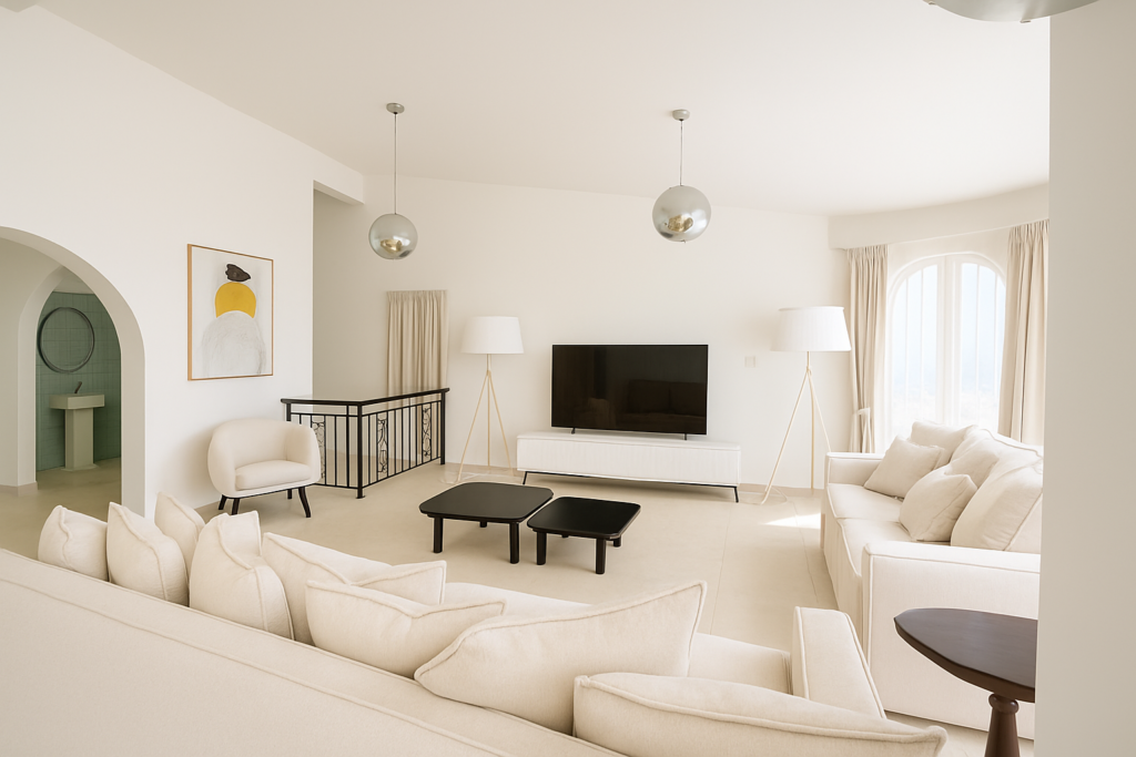Discover the elegance and comfort of Melissovounos Villa 33, a luxury 5-bedroom villa nestled in the peaceful hills of Tala, offering breathtaking panoramic views over Paphos and the Mediterranean Sea. This three-level residence includes a beautifully designed 3-bedroom main villa and an independent 2-bedroom Granny Flat, complete with its own entrance, kitchen, bathroom, and living area – perfect for guests, extended family, or rental use. Thoughtfully positioned on the prestigious slopes of St. Neophytos mountains, the property captures unobstructed sea views from every level – ground floor, midfloor, the Granny Flat, and pool area. The villa is built to exceptional standards, featuring a spacious open-plan layout, granite kitchen finishes, central heating, air conditioning provisions, and en-suite master bedroom. Outside, you’ll find a private 8x4m pool, mature landscaped garden, and ample verandas for outdoor living. Located just 10 minutes from Paphos town, and top golf resorts, this villa combines tranquil living with convenient access to amenities. It’s an ideal family residence or investment opportunity in one of the island’s most sought-after locations.