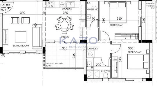 Πωλείται υπό ανέγερση διαμέρισμα δύο υπνοδωματίων στην περιοχή Ύψωνας της επαρχίας Λεμεσού. Αποτελείται από 78 τ.μ. καλυμμένους εσωτερικούς χώρους , 22 τ.μ. καλυμμένες βεράντες και 54 τ.μ κήπο οροφής. Διαθέτει 3 χώρους υγιεινής εκ των οποίων η 1 βρίσκεται στον κήπο οροφής, πιεστικό σύστημα νερού, ηλιακό σύστημα νερού, πρόνοια για συστήματα κλιματισμού, πρόνοια για ηλεκτρική θέρμανση, φωτοβολταϊκα, αποθήκη και καλυμμένο χώρο στάθμευσης. Βρίσκεται στον 3o όροφο τριώροφης πολυκατοικίας, με θέα τη θάλασσα σε καλή και ήσυχη περιοχή κοντά σε υπηρεσίες και ανέσεις, το έργο διαθέτει πιστοποιητικό ενεργειακής απόδοσης Α. Τιμή πώλησης 360,000 ευρώ, πλέον Φ.Π.Α.
