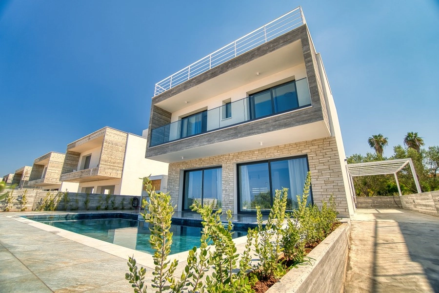 This unique development in Kissonerga Village on the outskirts of Paphos features impressive modern architecture with spacious and comfortable areas in green surroundings. These 20 breathtaking three-bedroom and four-bedroom villas, within walking distance of the beach and many local amenities, combine simplicity and practicality and offer scenic views of the Mediterranean Sea.