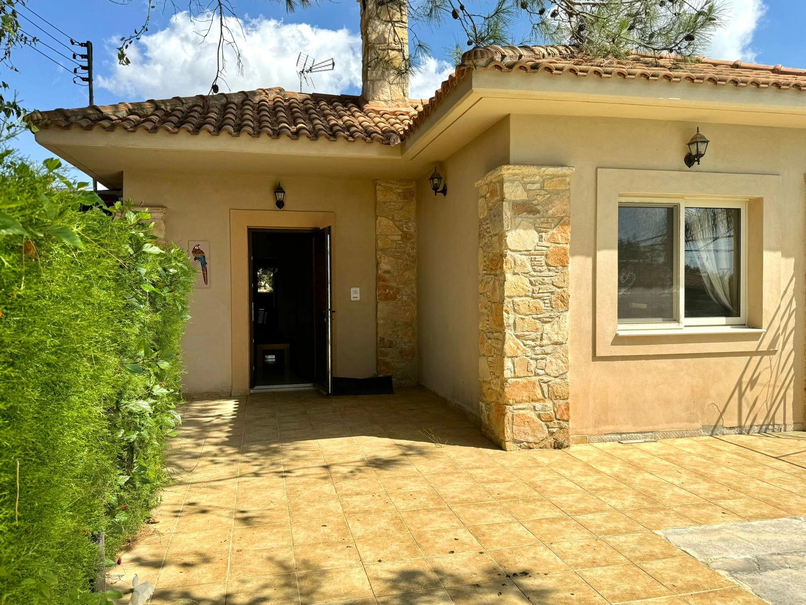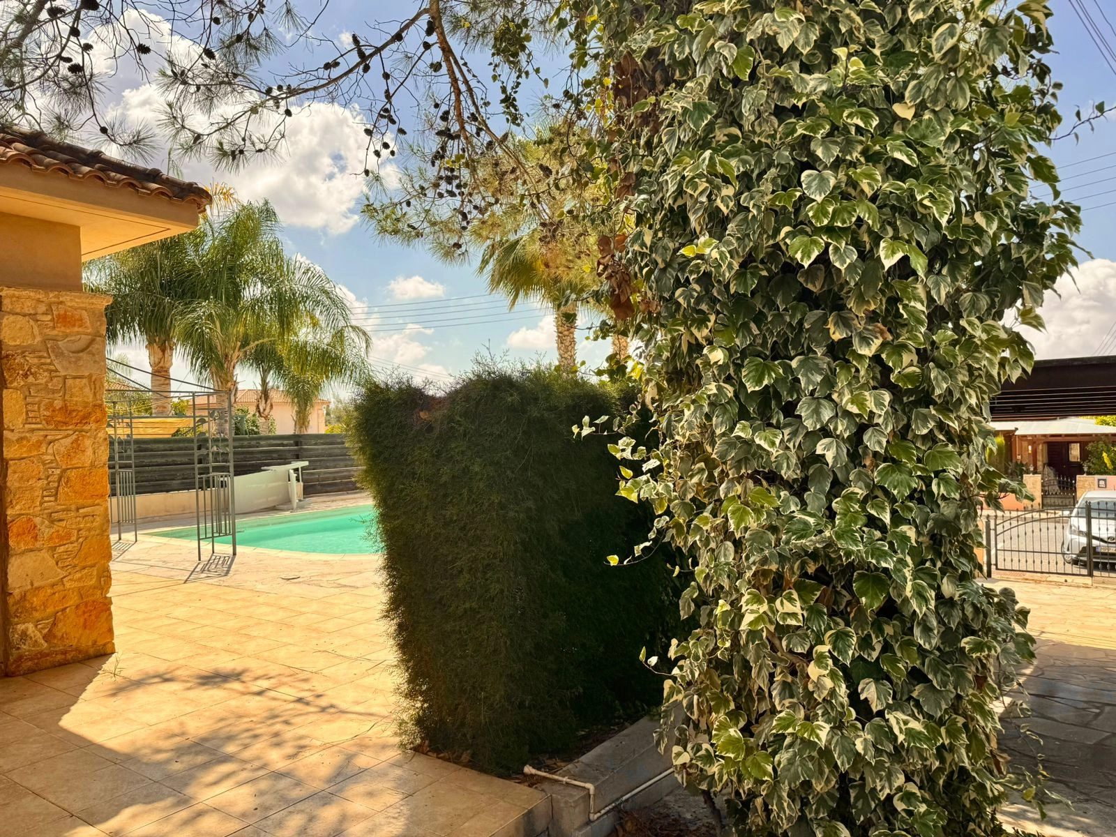 For sale a 3 bedroom bungalow with a swimming pool in the Souni area. There are necessary household appliances and furniture. The house has a garden with tangerine, orange, pomegranate and lime trees. There is also covered parking, outdoor parking and storage rooms.