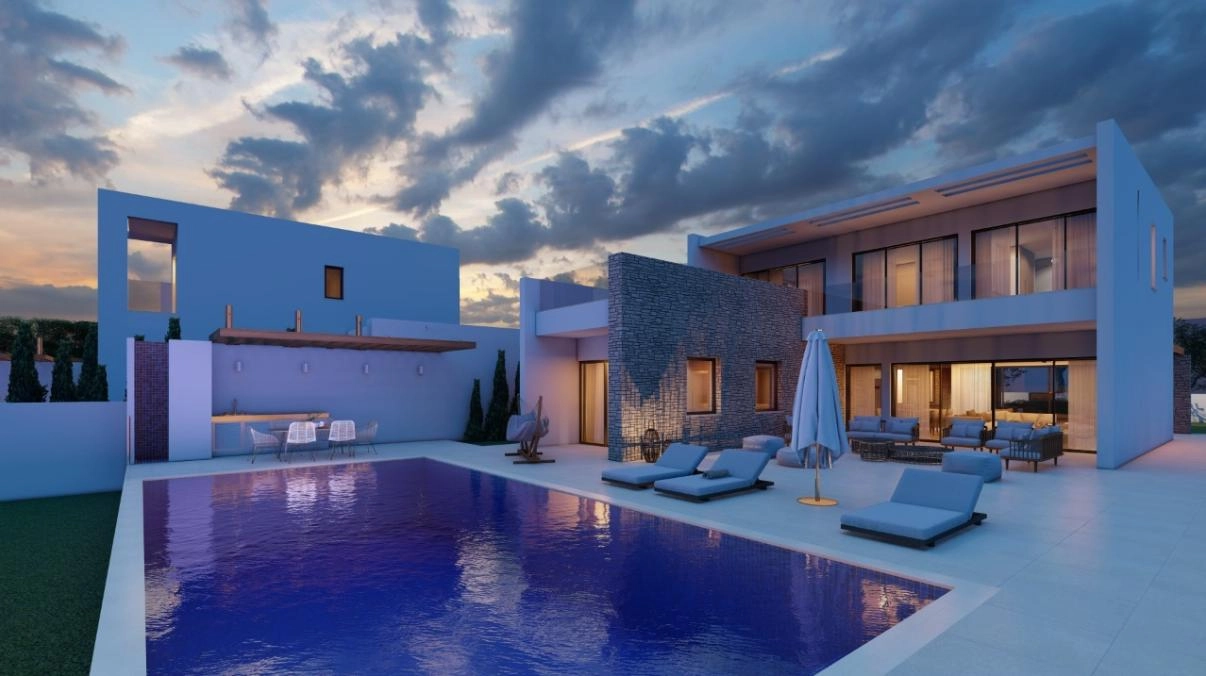 Villa for sale in a complex of four modern villas, located in the prestigious St. George area, in close proximity to Akamas National Park, within walking distance from the flagship resort Cap St. Georges Beach Club Resort. Just a short drive away is the popular Coral Bay resort, which attracts thousands of tourists from all over the world every year thanks to its sandy beaches, an abundance of restaurants, bars and a diverse nightlife. The villas are distinguished by excellent design and construction quality and high-end finishes. The complex is close to all infrastructure, including supermarkets, schools, restaurants, a medical center. Within walking distance is Cap St. Georges – the largest residential resort complex on the first line in Cyprus, as well as a luxury five-star hotel with an extensive list of services and entertainment.