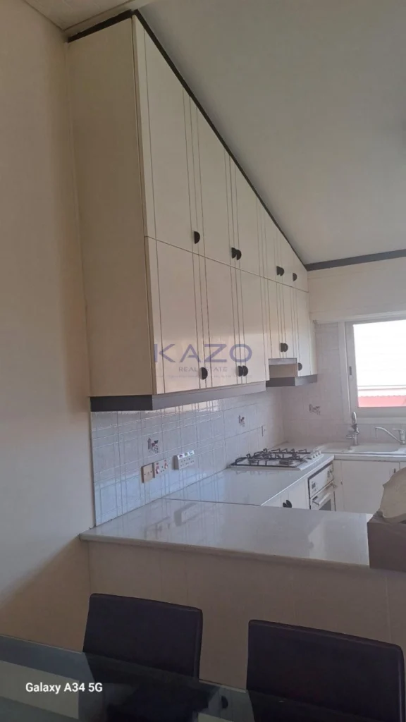 Available for rent, a three-bedroom plus office room upper-level house in Agios Athanasios area. The property covers 200 sqm of internal space. More specifically, it consists of a large living room, a kitchen fitted with all essential appliances, three very spacious bedrooms, and a bathroom area. It comes with one covered parking space and has a fireplace in the living room.