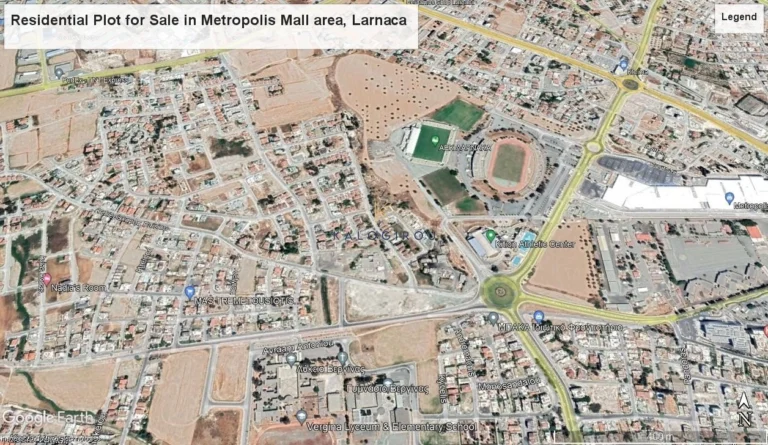 Residential plot for sale in the New Metropolis Mall area, Larnaca. Great location, as all amenities, such as schools, supermarkets, entertainment and sporting facilities, are within close proximity. Located in a lovely residential area of Larnaca within close proximity to the New Metropolis Mall. There is easy access to highways linking all cities on the island.