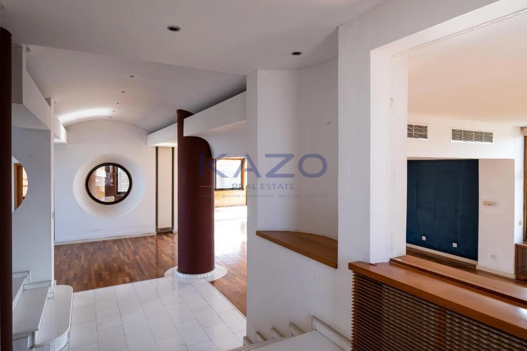 The property is a two-storey house with a basement and a swimming pool in Strovolos. It is located on Konstantinoupoleos avenue, 200m from American Medical center.