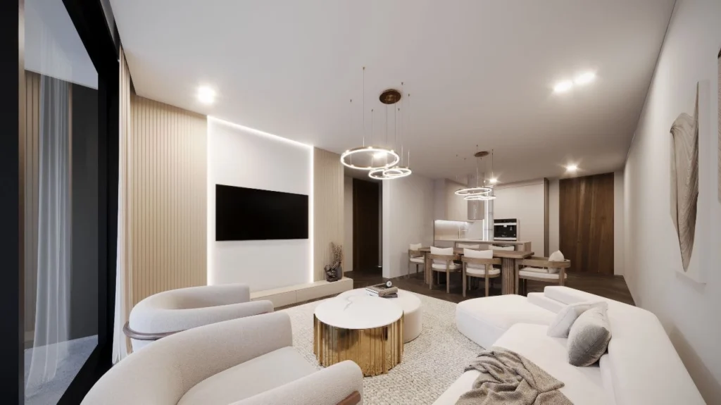 For sale a two-bedroom penthouse in Larnaca in a 3-storey complex under construction, located just 3 kilometers from the sea. There is a covered veranda of 57 m2 on the roof.