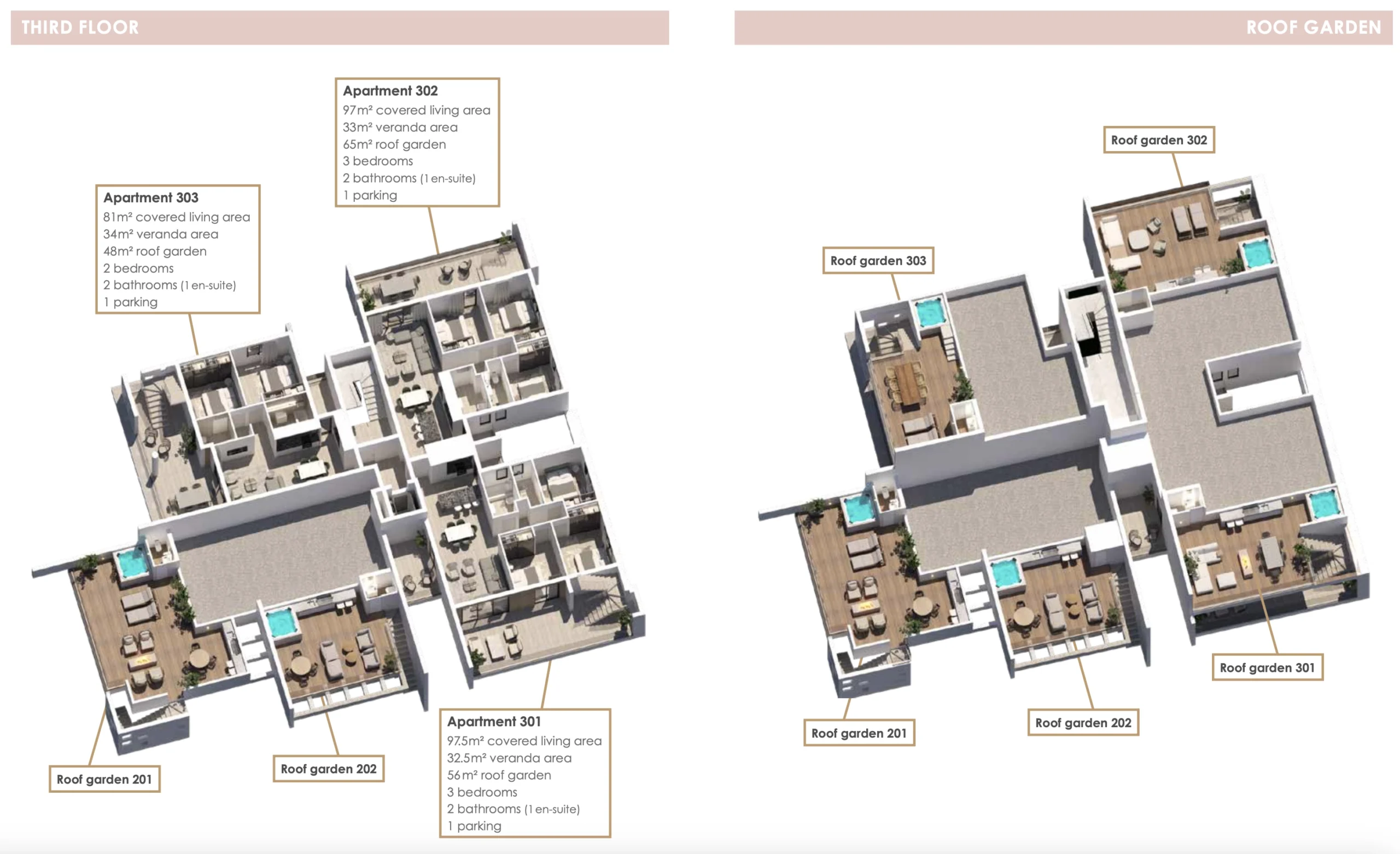 Available is a stunning 3-bedroom penthouse apartment #301 located on the third floor, featuring a private roof garden in the flourishing residential sector of Aradippou, Larnaca. This residence offers a spacious living area designed for relaxation and entertainment, complemented by a modern, open-plan layout that ensures a seamless flow throughout the home. Enjoy large glass-fronted verandas with captivating views, double-glazed windows for insulation and quietness, and thermal insulation for energy optimization. The apartment is equipped with built-in self-closing wardrobes, designer sanitary ware, and a luxury kitchen. It holds an energy-efficient class A certificate and benefits from eco-friendly features including shared electricity with a net metering photovoltaic system, solar energy panels, and electric vehicle charging stations. Optional extras can be added during or after construction to enhance your living experience, such as a Jacuzzi on the rooftop, air-conditioning, security cameras, a fire safety system, and an alarm system. Surrounded by lush greenery, this penthouse offers a serene environment, making it a perfect modern home in a prime, central location with easy access to Larnaca’s vibrant core and key routes to Nicosia, Ayia Napa, and Protaras.