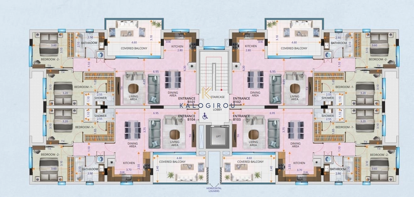 The project boasts 18 apartments in total. All units are with spacious and contemporary living areas. The modern design makes excellent use of features like top quality italian ceramic finish, unique glass balconies and clever layout of living areas designed to offer optional space, privacy and also a views of the prestigious neighbourhood. Some of the second floor apartments benefit from individual private and luxury roof-gardens with amazing views of the lovely neighbourhood. Each apartment has one parking bay and a storage room on the ground level. In addition, all residents will have access to the communal swimming pool.