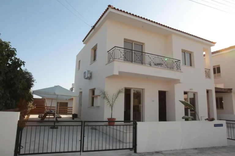 This delightful villa is located in Timi, Paphos. Located approximately 16km away from Paphos town, near to the international Airport, the traditional Cypriot village of Timi is host to three village taverns, a supermarket, a bakery, a butcher, and a few small kiosks and fruit stands. Surrounded by beautiful nature, Timi is popular for cycling, walking and photography.  in addition, the forest with its fragrant eucalyptus trees sits by the beach, and is an idyllic spot to enjoy a picnic at the designated site.  Situated just a short walk away from the village centre, and within easy reach of the beach, this 3 bedroom villa is a lovely home in a charming location.  Available fully furnished and equipped, the property comes complete with everything required for a comfortable living environment.    The open plan ground floor has living, dining and kitchen areas, with patio doors that lead out to the private garden. The kitchen has all of the expected appliances and ample worktop and cupboard space.  A guest toilet completes this floor. Upstairs there are three bedrooms, one of which is en-suite, and a shared family bathroom. The property enjoys an easy to maintain garden and private parking is also available. A fantastic choice for anyone seeking a home in a pleasant village setting. Distances: 3 minutes’ drive to nearest beach 7 minutes’ drive to Paphos international Airport 10 minutes’ drive to Paphos Center