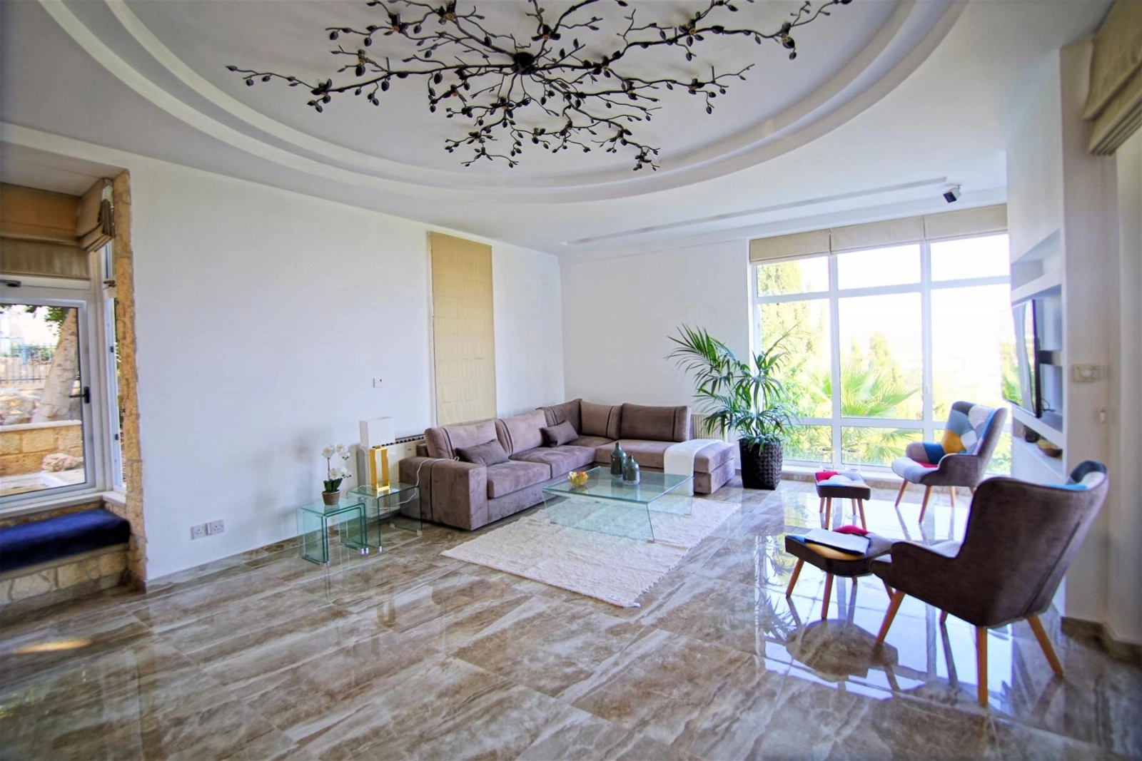 Luxurious Villa for Rent in Pegia, Paphos Nestled on a hillside in Pegia, this stunning luxury villa offers unobstructed, panoramic views that will remain forever breathtaking. Located just minutes away from the famous Coral Bay, one of Paphos’ most popular holiday destinations, this villa provides a perfect blend of privacy, comfort, and elegance. The property features a large private swimming pool (5m x 10m), beautifully framed by lush, well-maintained gardens, offering a serene oasis for relaxation. The main villa boasts four spacious bedrooms, along with a fully equipped gym and a sauna for your personal wellness retreat. An additional one-bedroom apartment, attached to the main villa, comes with its own en-suite bathroom, a cozy kitchen, and open-plan living and dining areas. This apartment also has direct access to a large patio and barbecue area, perfect for entertaining. For year-round comfort, the entire property is fully air-conditioned and equipped with gas central heating. Main Villa Area: 350m2 Apartment: 75m2 Covered Areas: 83m2 Plot Size: 1,450m2 This villa is the perfect choice for those seeking a high-end rental experience in one of Cyprus’ most desirable locations.