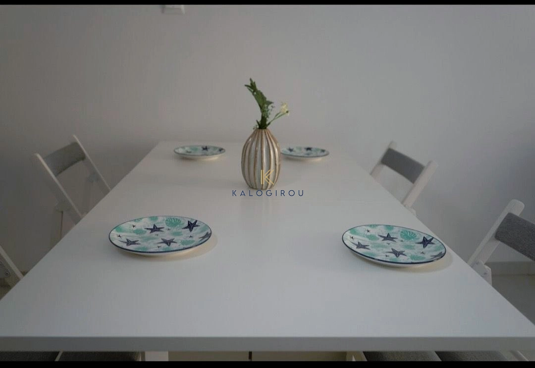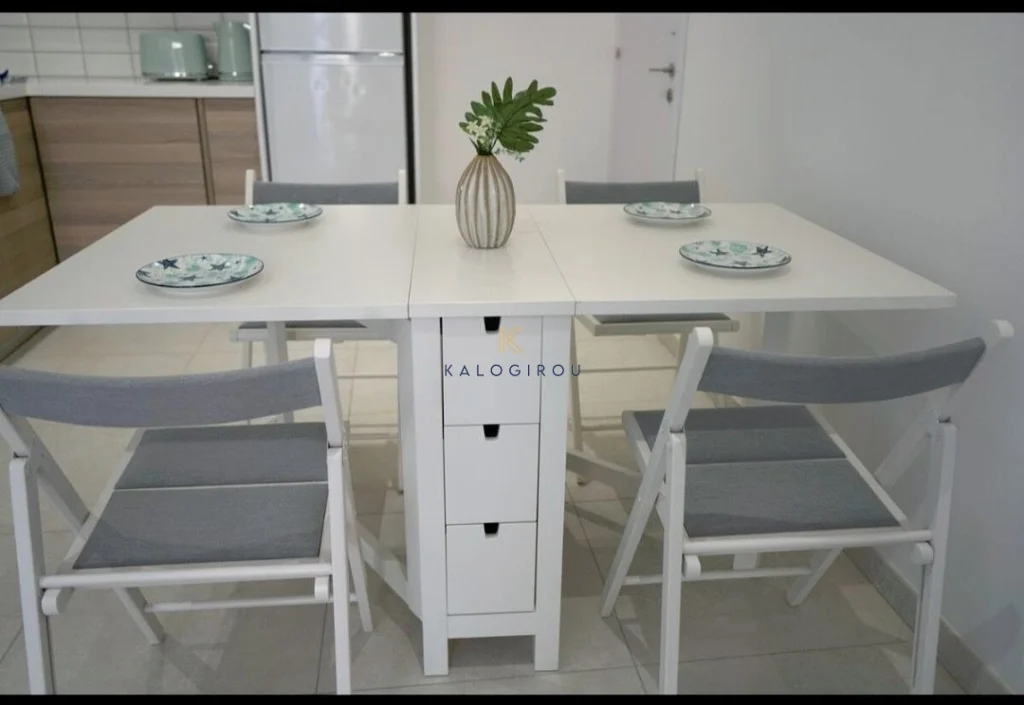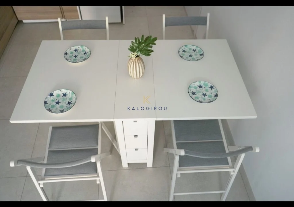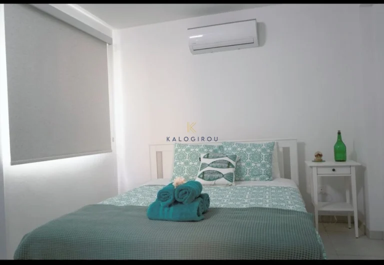 Renovated Apartment for Rent in Kaparis area, Famagusta. The property is fully furnished and consists of an open plan kitchen with a living and dining area, two bedrooms, common shower, 1 wc, covered parking, fully furnished and kitchen appliances. The area of the internal spaces is 57 sqm plus 6sqm of verandas. This space was created with a lot of love. It has a unique design and it is ideal for families.