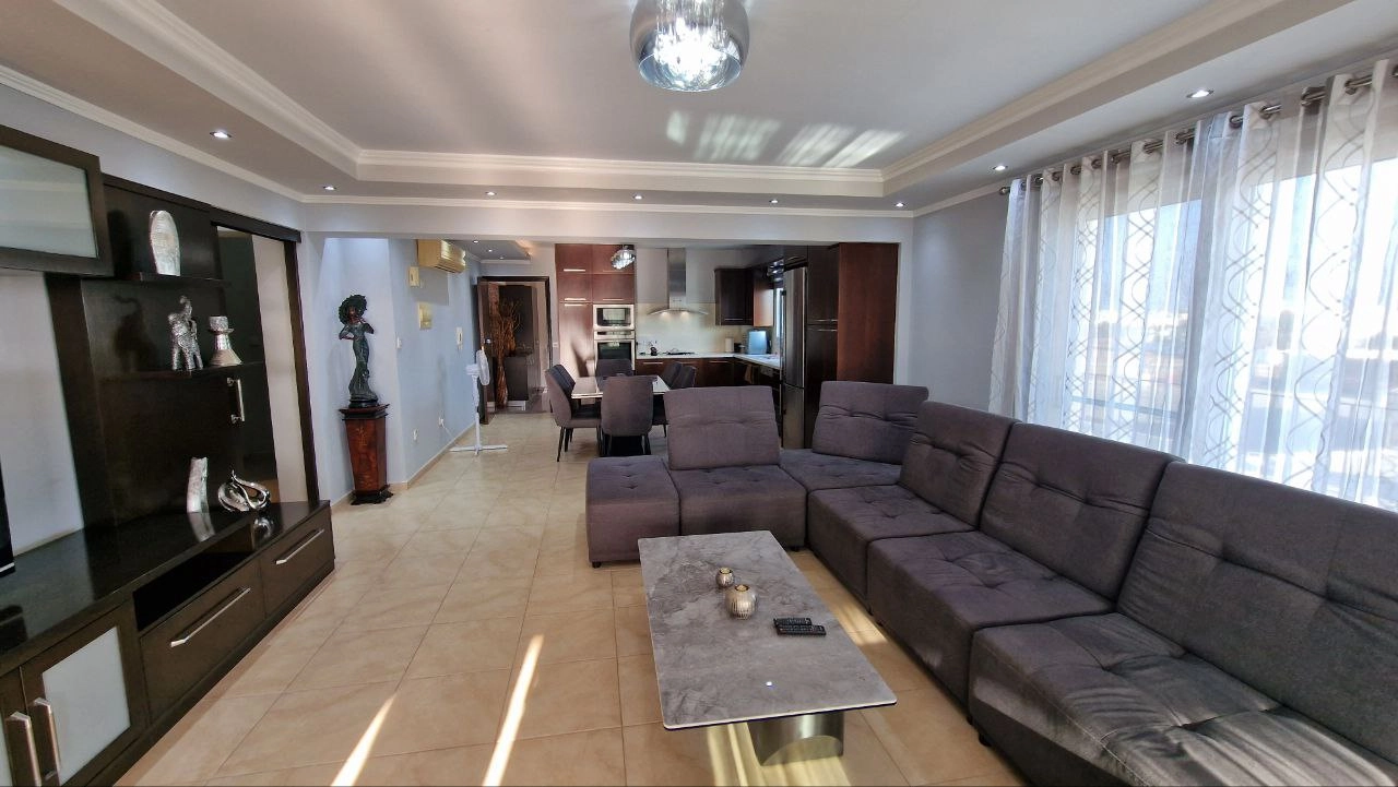 Large 3 bedroom apartment for sale in Deryneia. The apartment is fully furnished and equipped with household appliances. Complete thermal insulation has been carried out and the apartment is warm in winter and cool in summer. Very large veranda 160 sq m, with equipped barbecue area. Parking space for 2 cars. Separate entrance from the street. Excellent location at the entrance to Deryneia. Near the bank, shops, bus stops.