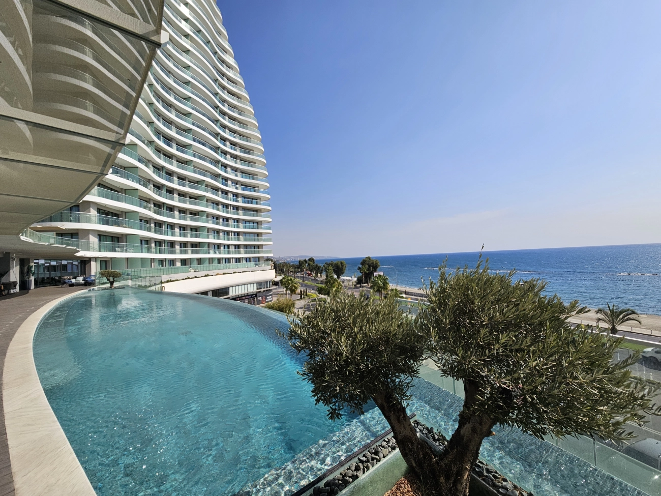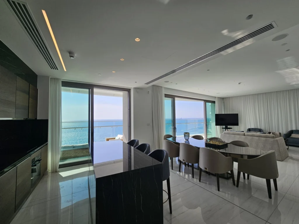 Beautiful luxury apartment with 4 bedrooms and 5 bathrooms for sale in Germasogeia area, on Limassol’s main promenade in the heart of the tourist area. The apartments feature magnificent panoramic sea views, high ceilings, high-quality furniture and appliances, modern design, large verandas, and a smart home system. The apartment includes a spacious open-plan living room and kitchen, four bedrooms, all with private bathrooms, and a guest bathroom. The complex provides residents with a 5-star concierge service, two indoor and outdoor pools, a gym, a spa, a sauna, as well as underground parking and a playground. There are 2 parking spaces for cars.