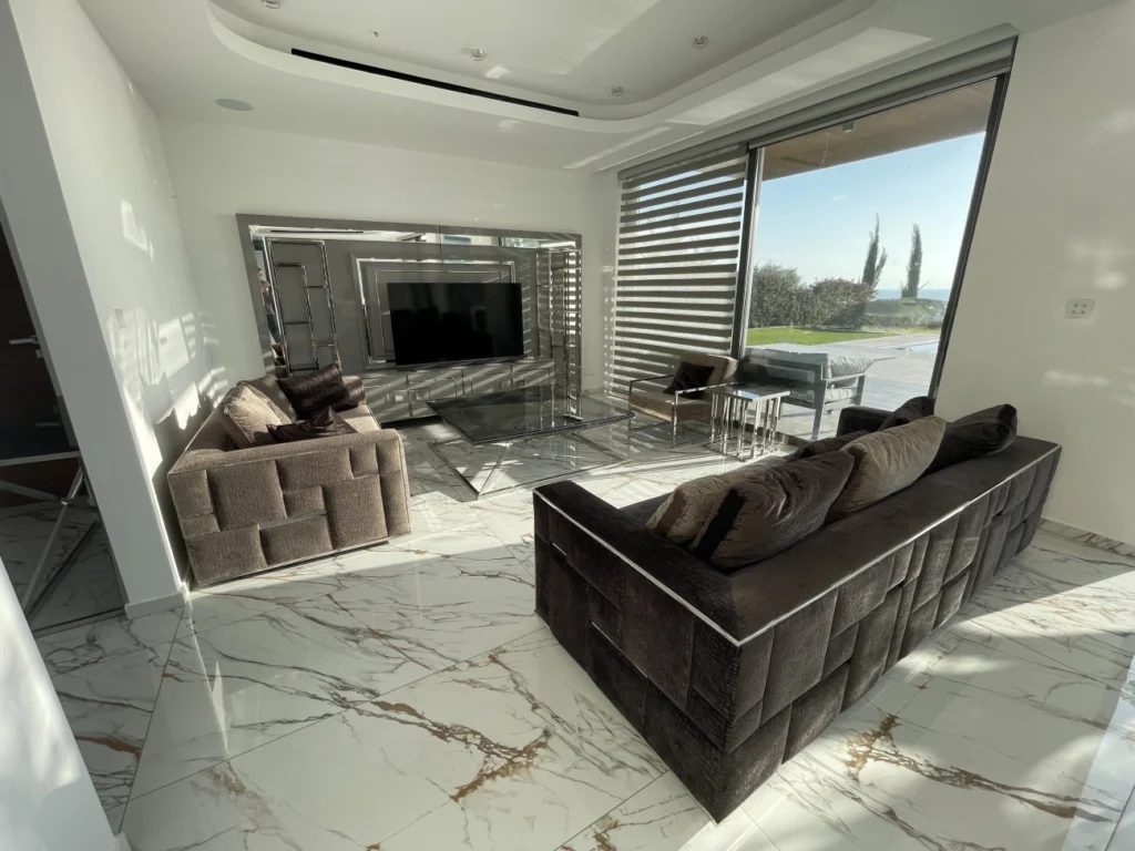 Villa for sale in lower Pegeia, Paphos. Due to its location on the slope, the villa offers charming views of the coral shores of Coral Bay. Philippos Supermarket is only 2.7 km away, and Coral Bay center, where restaurants, bars and all necessary infrastructure are located, is only 3 km away. The villa is fully furnished and equipped with household appliances. Air conditioning is installed, there is heating. Parking is available for the car.