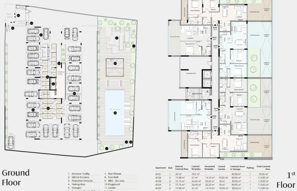 Apartments for sale in a new complex in Germasogeia, Limassol. The project consists of 23 apartments with 1, 2 and 3 bedrooms. The building offers a communal pool area, covered parking and an outdoor playground.