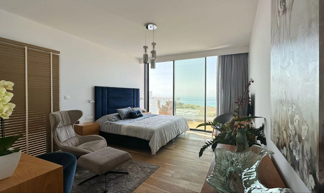 Villa for sale in the Chlorakas area, Paphos with 5 bedrooms, with a private pool and panoramic sea views. Modern designer renovation, household appliances from the best manufacturers. The house has an elevator. Located 2 minutes to the best beaches, shops, bars and restaurants.