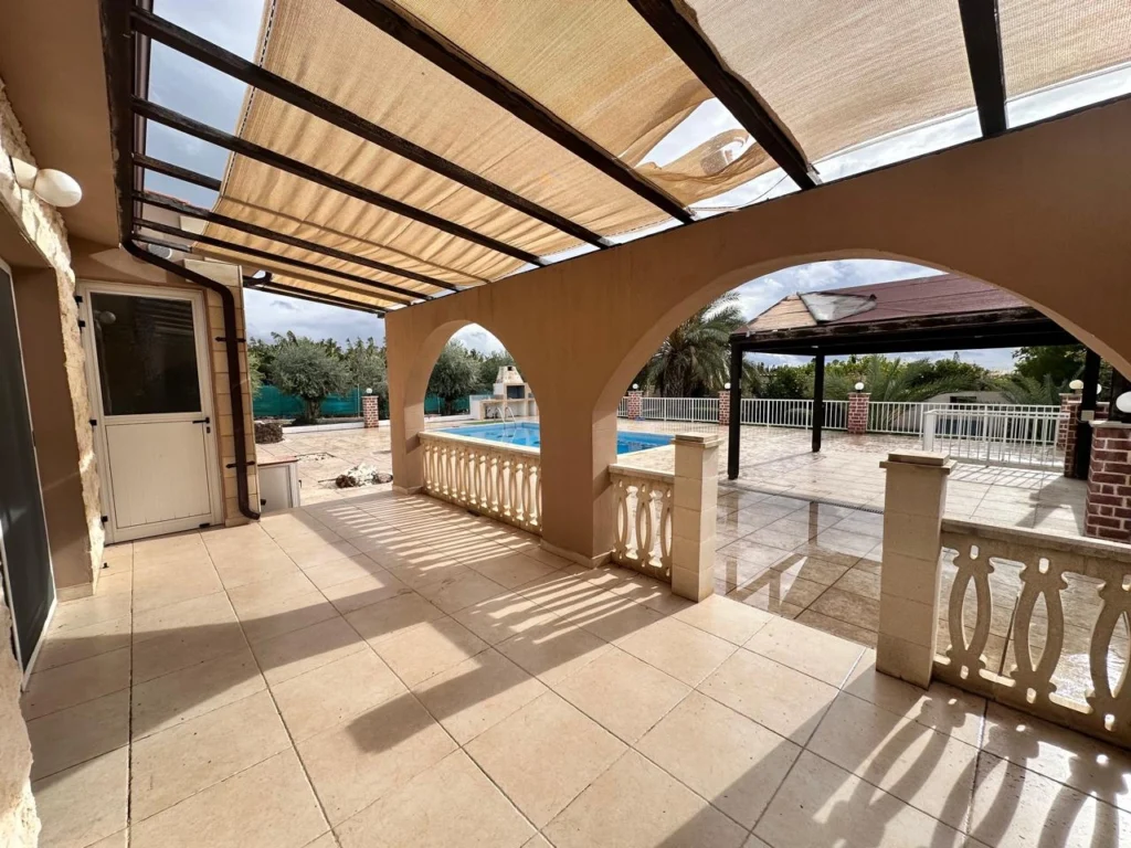 This charming 3-bedroom bungalow is situated in the St. George area of Peyia, Paphos. Nestled on a private plot, the property features a spacious uncovered parking area, a serene swimming pool, and a lush garden. inside, the bungalow boasts an open-plan design, seamlessly connecting the living, dining, and kitchen areas. Large doors lead to a covered veranda, perfect for enjoying the outdoors. Each of the three bedrooms includes its own ensuite bathroom with a shower, offering both comfort and privacy. The property is offered completely unfurnished, providing a blank canvas for personalization. Electricity can transfer to the Tenants name Pool maintenance is the tenant’s responsibility.
