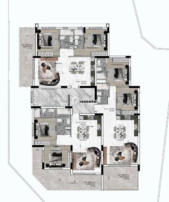 Consists of 4 floors with total 10 apartments (6 of them are 2-bedroom apartments and 4 of them are 3-bedroom apartments)