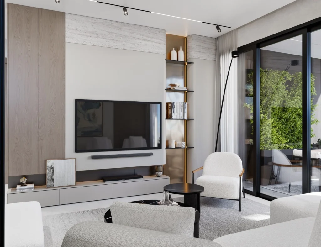 Modern apartment under construction for sale in Agios Dometios. The layout includes a large living room, kitchen, two bedrooms and 4 bathrooms. The apartment is equipped with a spacious terrace, Roof Garden, barbecue area, parking space, storage room and elevator. The construction uses the highest quality materials with excellent thermal insulation characteristics. Modern style and elegant design emphasize the high standard of living. The convenient location near the city infrastructure makes this apartment an ideal choice for a comfortable life.