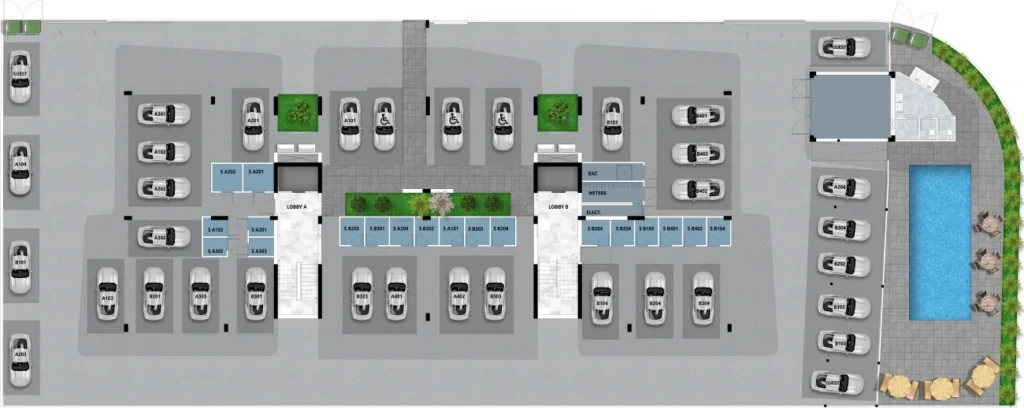 We present an exclusive residential complex with exquisite 1-3 bedroom apartments and penthouses, located just 900 meters from the sparkling Mediterranean Sea. Located in the sought-after area of Livadia, Larnaca, close to the prestigious Land of Tomorrow project, this complex offers a relaxed lifestyle while providing easy access to supermarkets, schools, shops and all necessary amenities. The project consists of two modern blocks, each of which demonstrates an exquisite architectural design and high-quality materials. Each residence has been carefully designed to create a warm and welcoming atmosphere with large windows that fill the spacious open-plan interiors with natural light. These living areas open onto extensive covered verandas or private roof gardens, ideal for a Mediterranean lifestyle both inside and out. Residents can also use the communal pool, an ideal place to relax and refresh themselves on hot summer days, creating unforgettable memories with family and friends. This stunning Class A energy efficiency certified project, modern style and ideal location close to all amenities, embodies the essence of coastal living in one of the most attractive areas of Larnaca.
