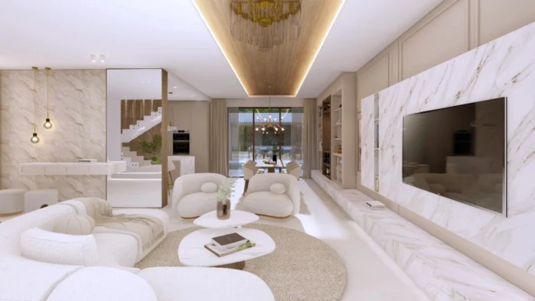 Each residence is set on an expansive plot, providing ample outdoor space for Mediterranean lifestyle. They come complete with private swimming pools, landscaped gardens, and spacious terraces perfect for alfresco dining and entertaining. The award-winning architectural design emphasizes sophistication with modern lines, high ceilings, and large panoramic windows that flood the interiors with natural light, while premium finishes, such as marble flooring and designer kitchens, enhance the sense of refinement.