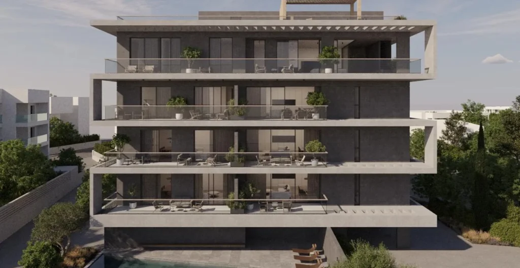 Apartment for sale in Germasogeia, Limassol in the heart of the tourist center of the city, just 1 km from the famous Dasoudi beach. This residential project offers a combination of minimalism and functionality.The complex has four floors of exquisite apartments, including 3 double and 1 single apartments on each floor, as well as 2 three-bedroom penthouses with beautiful views and privileges on the top floor. Each apartment in this complex offers an open floor plan with spacious interiors and large verandas, ideal for relaxing.The residential complex features rooftop gardens with private pools, a communal recreation area, and state-of-the-art smart home technology that provides a high level of comfort and safety for all residents. Covered parking is an additional advantage, providing convenience and protection for the car.The complex is only 0.5 km from shops and a school, and the distance to the city center is only 2 km, which gives residents the opportunity to enjoy all the benefits of urban infrastructure, being in a cozy and peaceful area of Limassol.
