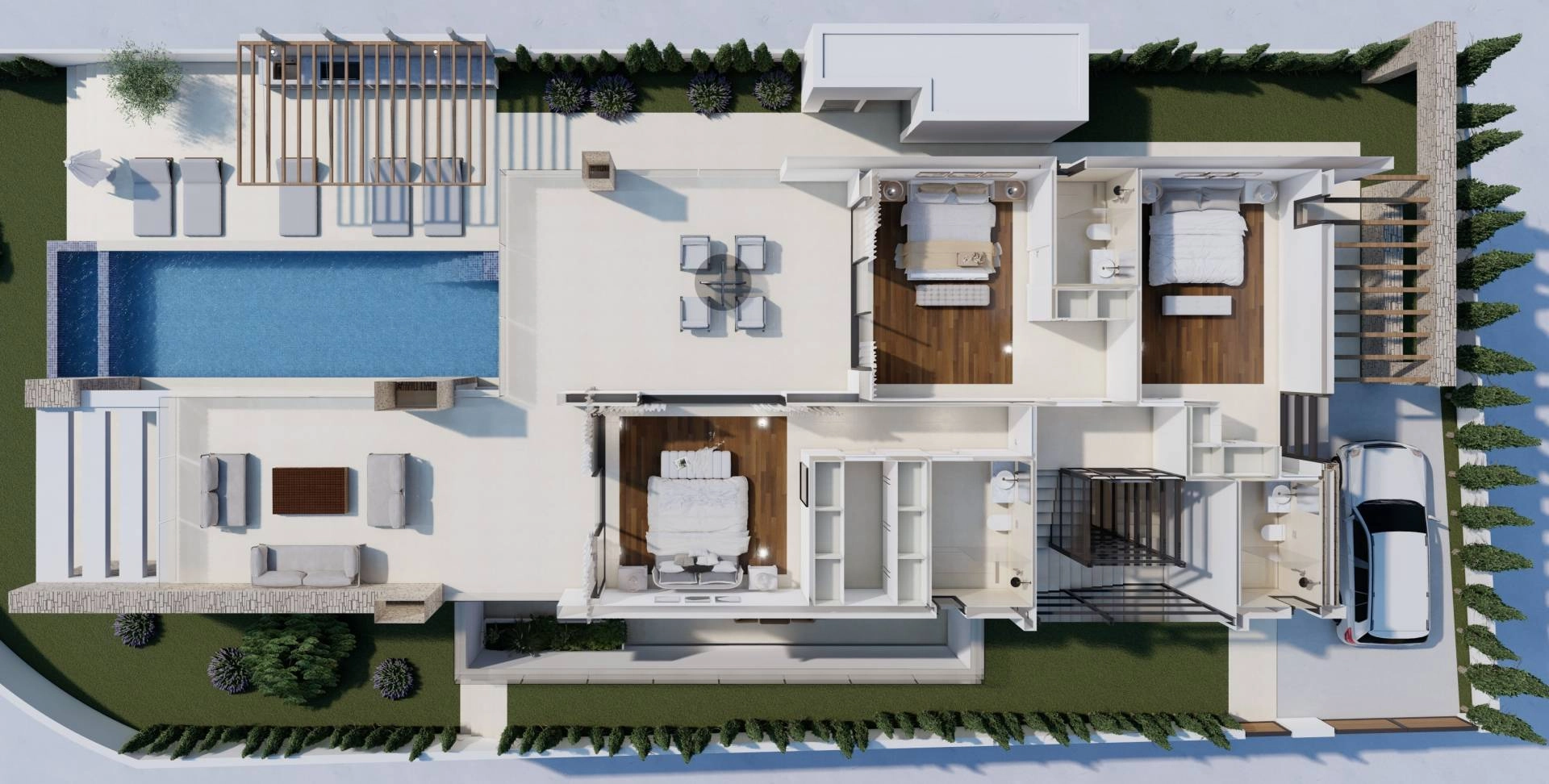 Luxury villa for sale in Tombs of the kings area. 4 bedrooms plus 2 extra for staff. Swimming pools and luxury materials. Smart home system, underfloor heating. The villa is located on the first line of the sea in a gated complex with its own management company. Walking distance to the beach and English school.