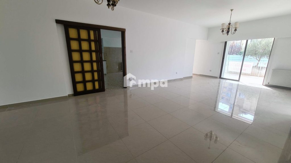 Large whole floor three-bedroom apartment near Nicosia University in Egkomi for Rent. On the Ground floor of a 2-floor Corner Building.