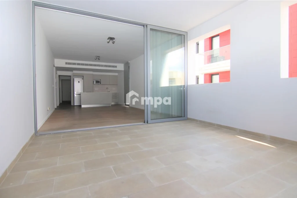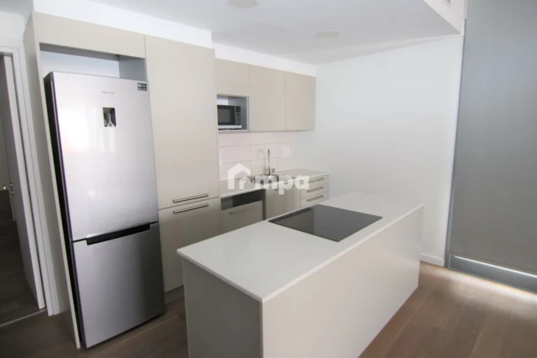 This apartment is offered unfurnished. It is situated on the second floor of a modern 3-story building. It comprises a living/dining area, an open plan kitchen with electric appliances, a bathroom serving the two bedrooms, a guest toilet, a large 20m² covered veranda, a storeroom, and one covered parking spot.