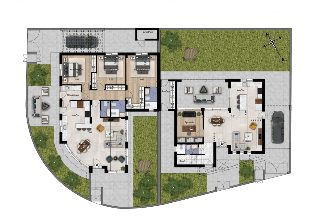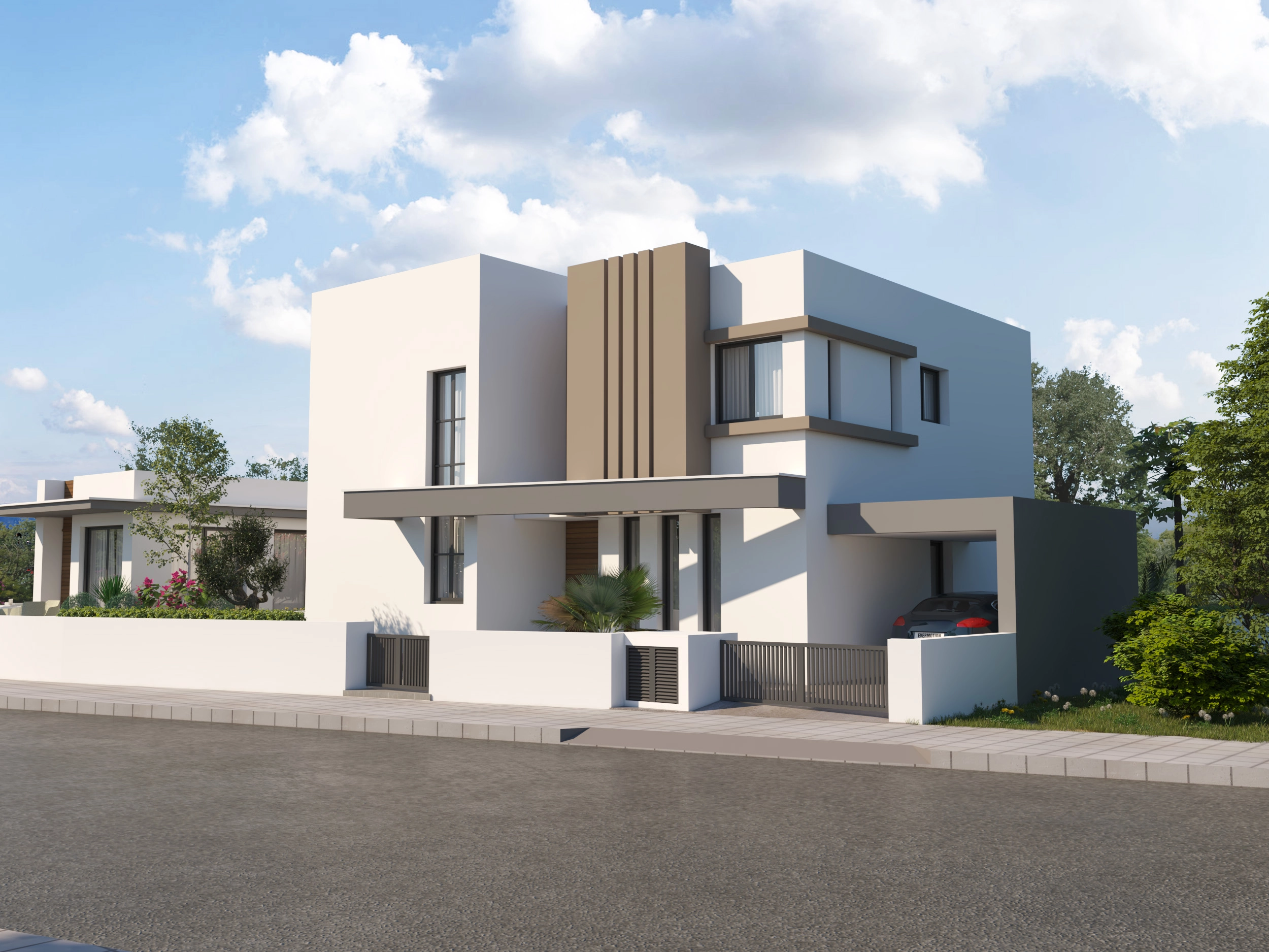 Modern 3 bedroom house for sale in Dromolaxia, Larnaca. Spacious layout and stylish design. The house has a large terrace, covered parking and a storage room. Barbecue area. High-quality thermal insulation guarantees energy efficiency and comfort at any time of the year. The house is made of first-class materials and meets the highest quality standards.