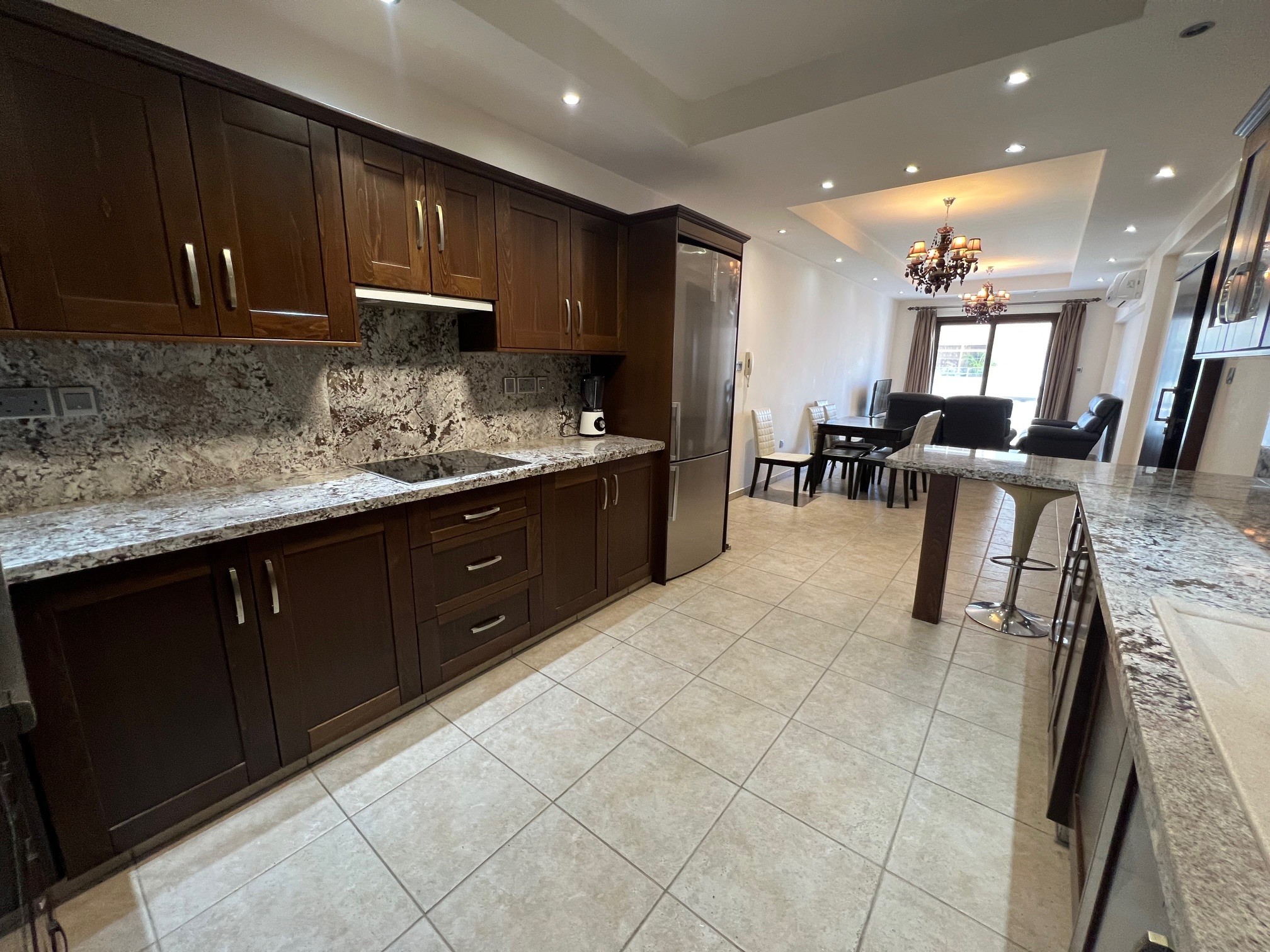 For rent 2 b/r apartment located in Enaerios, close to the beach and all kind of amenities. The covered area is 80 sq. m and it consists of an open-plan kitchen connected with a dining and living area, laundry room, covered balcony, 2 bedrooms (master bedroom en-suite with walk-in wardrobes and shower) and family bathroom. The apartment is available fully furnished and equipped, with air conditioning, double-glazed windows with mosquito nets, laminate floor, solar panels for hot water and uncovered parking.