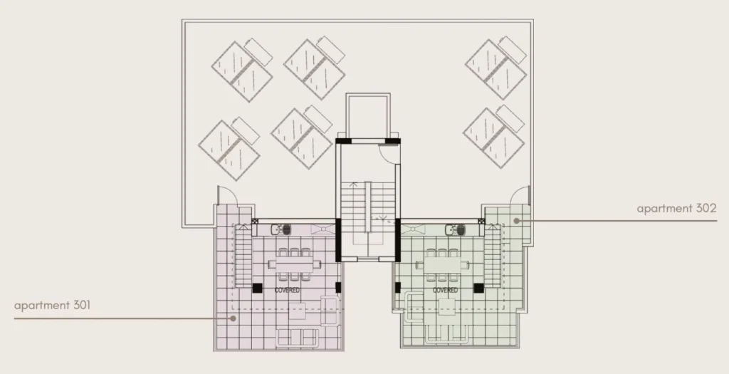 – Roof garden with a BBQ and bar for the apartments No. 301 and 302