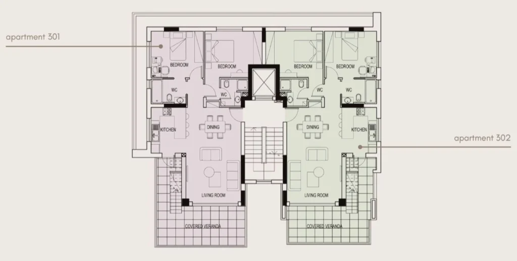 It features modern open plan layouts, a cleverly designed masterplan, large covered verandas, allocated store rooms, landscaping, security entrance door and covered parking places.