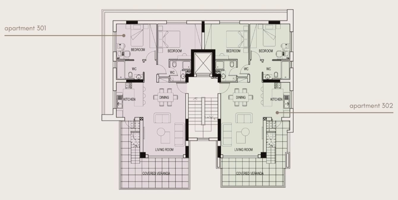 This is a modern 3 storeys building and contains 6 luxury apartments of 2 bedrooms.