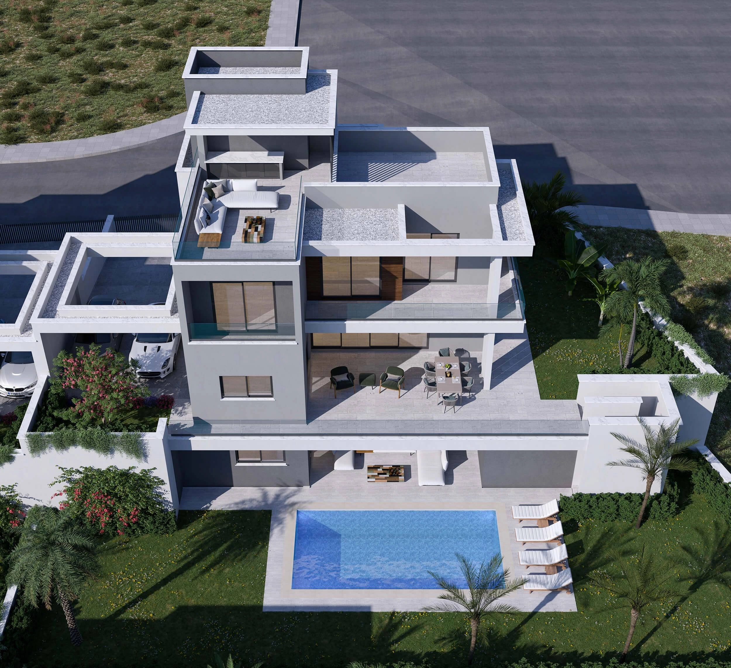 The stunning 2, 3 and 5-bedroom houses enjoy green surroundings combined with sea and city view, while providing at the same time easy access to all amenities.