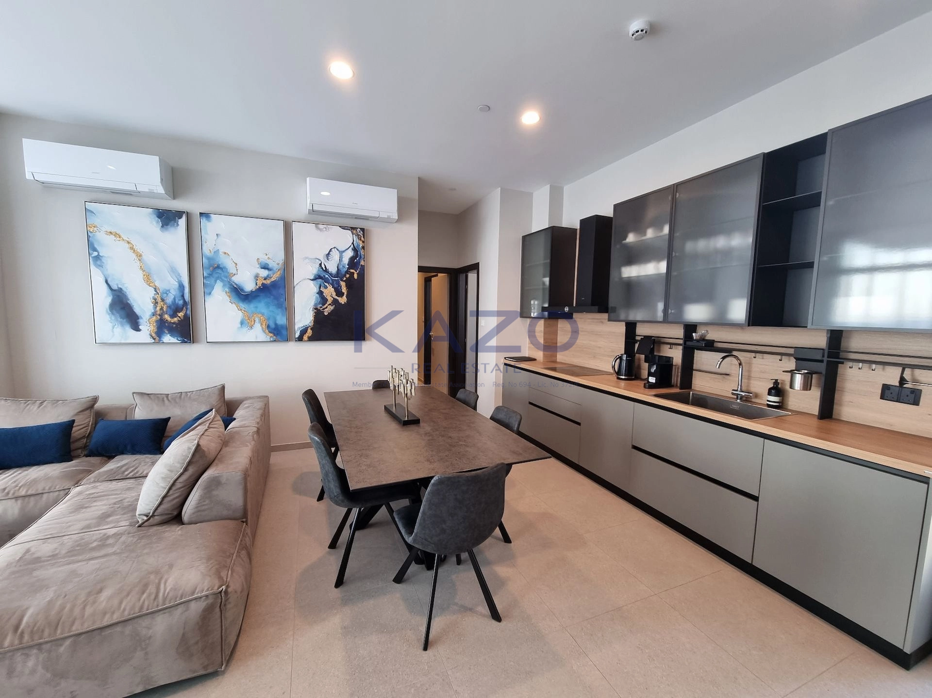 The apartment, built in 2021, is fully furnished and equipped with a central AC system and underfloor heating, ensuring comfort year-round. The gated complex offers excellent amenities such as a communal swimming pool and a gym, perfect for relaxation and fitness.