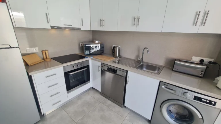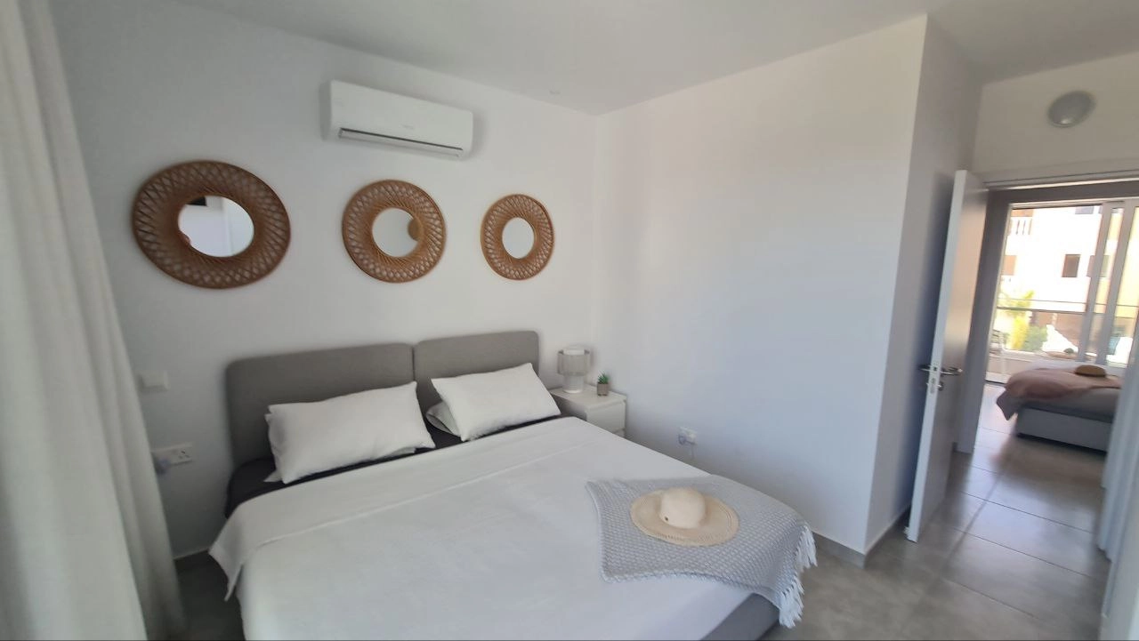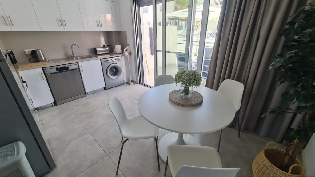 Modern townhouse with two bedrooms and three bathrooms for sale in the heart of Kapparis, Famagusta, just steps away from beautiful beaches, shops, and restaurants. Located in a small complex of 12 townhouses and 12 apartments with a communal pool, kids’ area, and gardens. The property offers 90 m² of internal space, 50 m² of uncovered veranda, and 20 m² of balconies. Fully furnished, it features an open-plan living area with a fitted kitchen, guest WC, two en suite bedrooms with balconies, and direct access to the pool from the rear veranda. Includes private parking. Communal fees are approximately €750 per year.