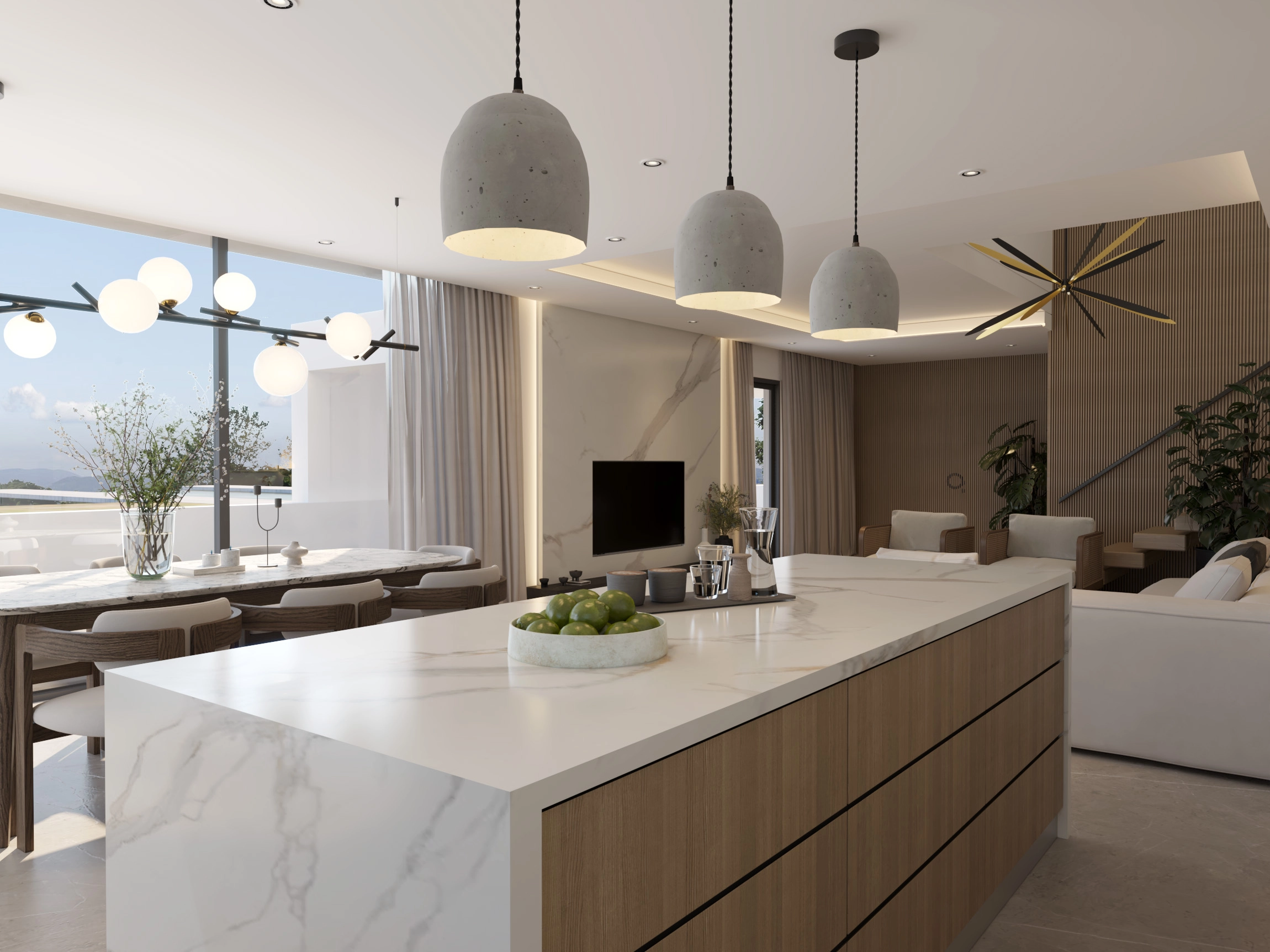 Three bedroom townhouse for sale in a new residential complex in the area of Deryneia, Famagusta, which combines comfort, privacy and convenience. The house is designed with reinforced walls between the sections, which provides excellent sound and thermal insulation, creating a calm and cozy atmosphere for living.The facility is located within walking distance from the state primary school, which makes it especially convenient for families with children. There is a farmer’s market nearby with a wide selection of fresh produce and local goods. A veterinary clinic nearby provides access to medical services for pets. Sports fans will appreciate the proximity to the football stadium, while schoolchildren will appreciate the proximity to the secondary school. There are various restaurants, cafes and other amenities within walking distance to ensure a comfortable daily life.The house is certified with energy efficiency class A, which helps to reduce energy costs and minimize environmental impact. Covered parking is also provided. A photovoltaic system is installed on the roof, allowing the use of renewable energy and reducing electricity costs. Double-glazed windows contribute to excellent thermal and noise insulation. The structure is made of heat-resistant aluminum, which ensures durability and high energy efficiency. The kitchen is equipped with stylish and durable granite surfaces that successfully combine functionality and modern design.