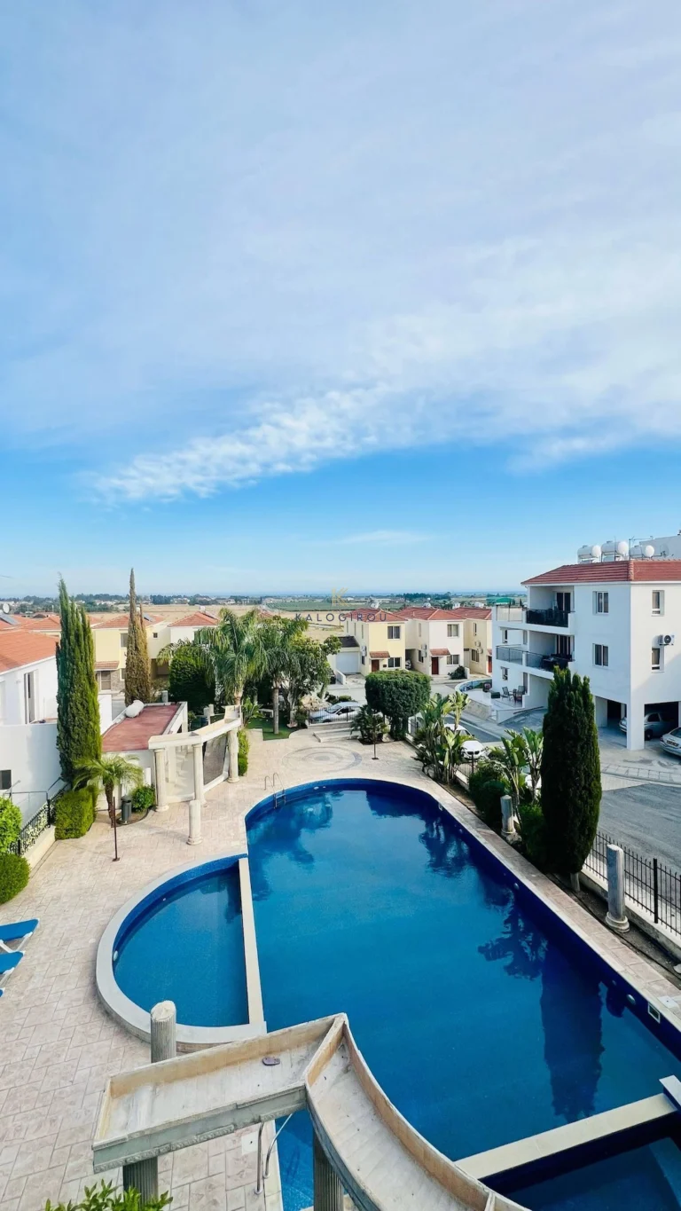 Apartment for rent in Tersefanou The property consists of two bedrooms, an open plan kitchen and living room with dining area, 1 bathroom with wc, an en-suite shower with W/C, a large balcony with Pool View and Sea View, and covered parking.