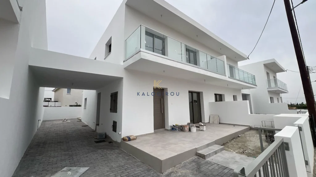 Brand New House for Sale in Kiti Village, Larnaca. This house is a double story, semi-detached house with internal covered area of 160 sq m in a plot of 193 sq m. On the ground floor consists of a separate kitchen and living/dining room and one guest toilet. On the first floor it consists of three spacious bedrooms, the master with en-suite shower and walk-in closet and one common bathroom. Externally, the property has garden and covered parking. The property also has provision for A/C.