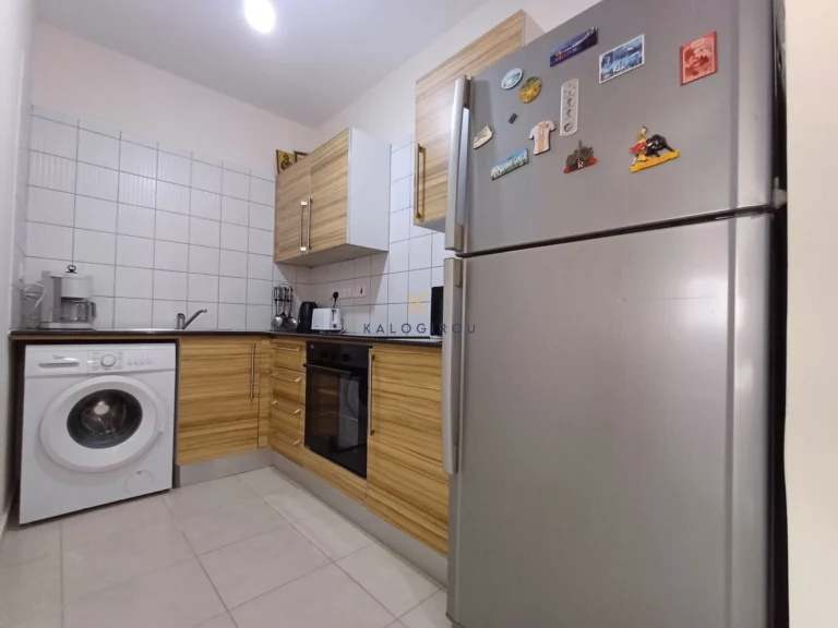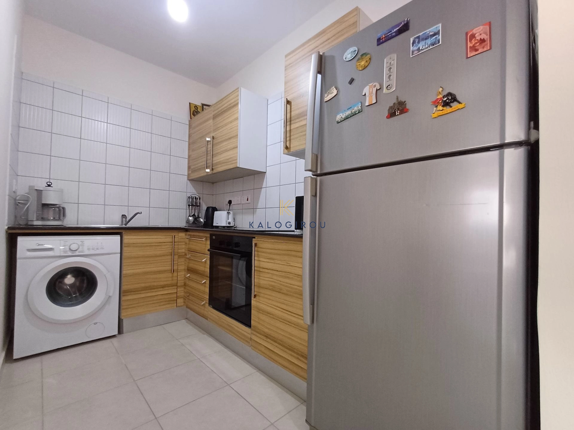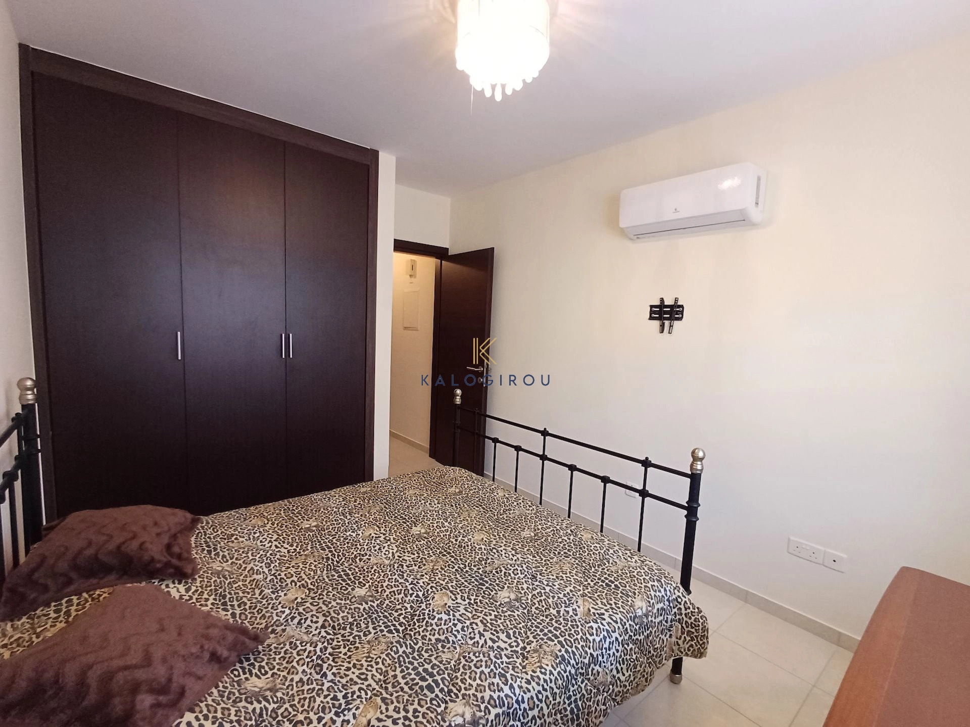 Apartment for rent in Tersefanou area, Larnaca. The apartment is fully furnished and consists of an open plan kitchen with living and dining area, one bedroom, one bathroom with wc, a nice covered balcony, covered parking and storage room on the ground floor. The property take place on the first floor of an apartment complex with communal swimming pool.