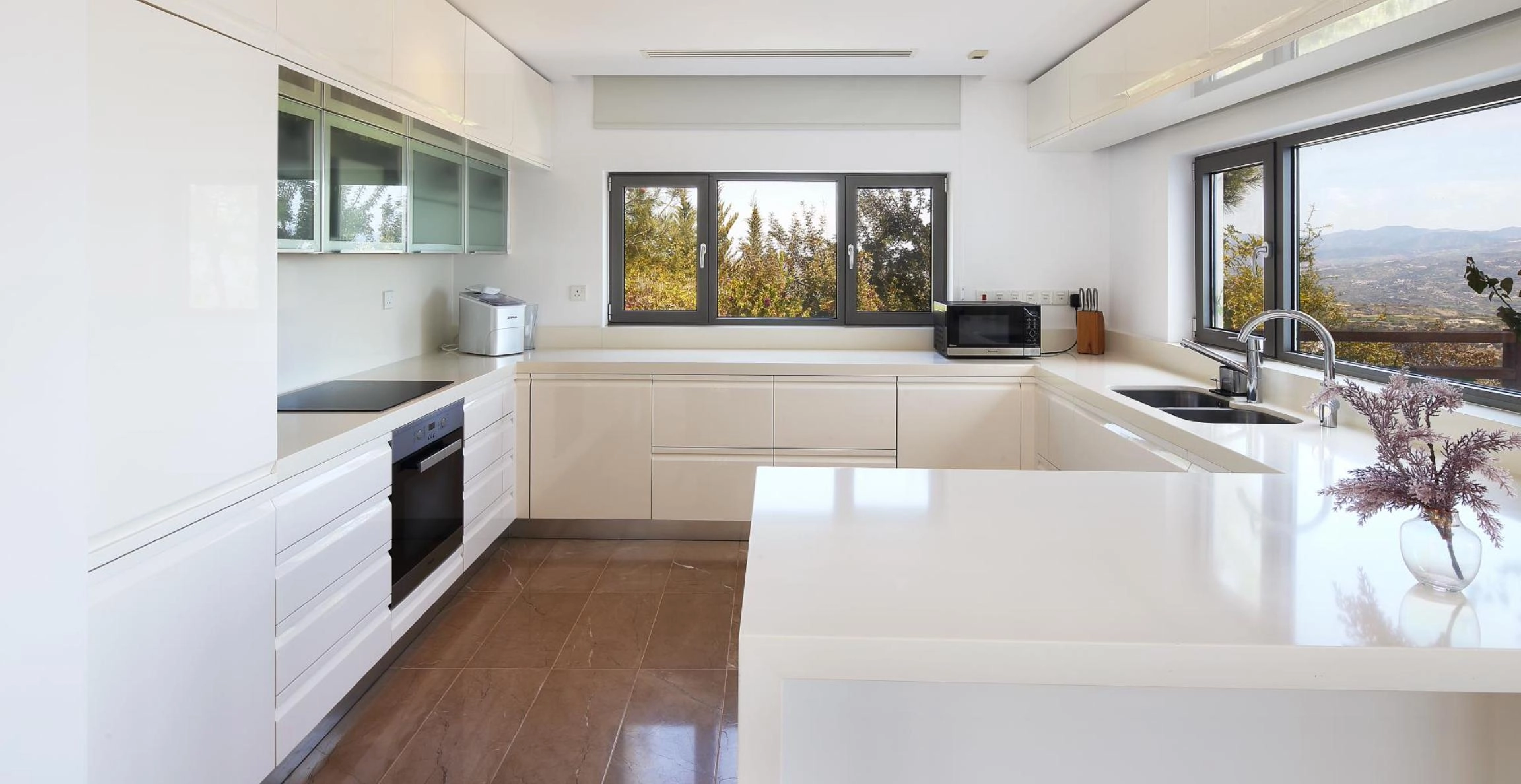 Mountain view villa for rent in Tsada, Paphos. 3 bedrooms, spacious living room and kitchen, study room, fully equipped bathrooms with heated towel rails. The house has underfloor heating, VRV air conditioning, spacious closets and external storage rooms. The plot area is 1320 m2, fully landscaped private gardens, barbecue terrace. Two-car garage with automatic doors. Home automation system, entrance and alarm system. Round-the-clock service support. Monthly rental includes resort fees including security, garden maintenance, pool maintenance, building maintenance, electro-mechanical maintenance. Monthly rates do not include: utility bills, house cleaning, which can be ordered. Resort Amenities: Award-winning spa and wellness center. Plateia, public square with restaurants, 18 hole golf course, restaurant and bar in the clubhouse. Driving course, golf academy, playgrounds, fitness park, bicycle route.