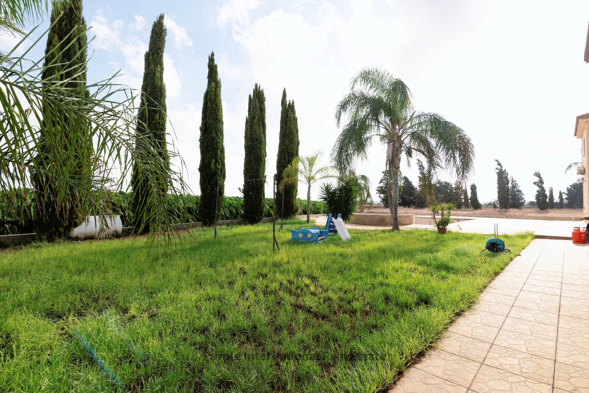 This spacious villa is located on the outskirts of Liopetri village, offering a peaceful environment with stunning inland views. Designed for comfortable living, it features five large bedrooms and a generous covered area, making it ideal for a family seeking privacy. The property sits on a vast 6054m² plot, just 5 km from the sea and close to Ayia Napa. While the villa is well-maintained and ready to live in, the private swimming pool and fencing of the property still need to be completed.