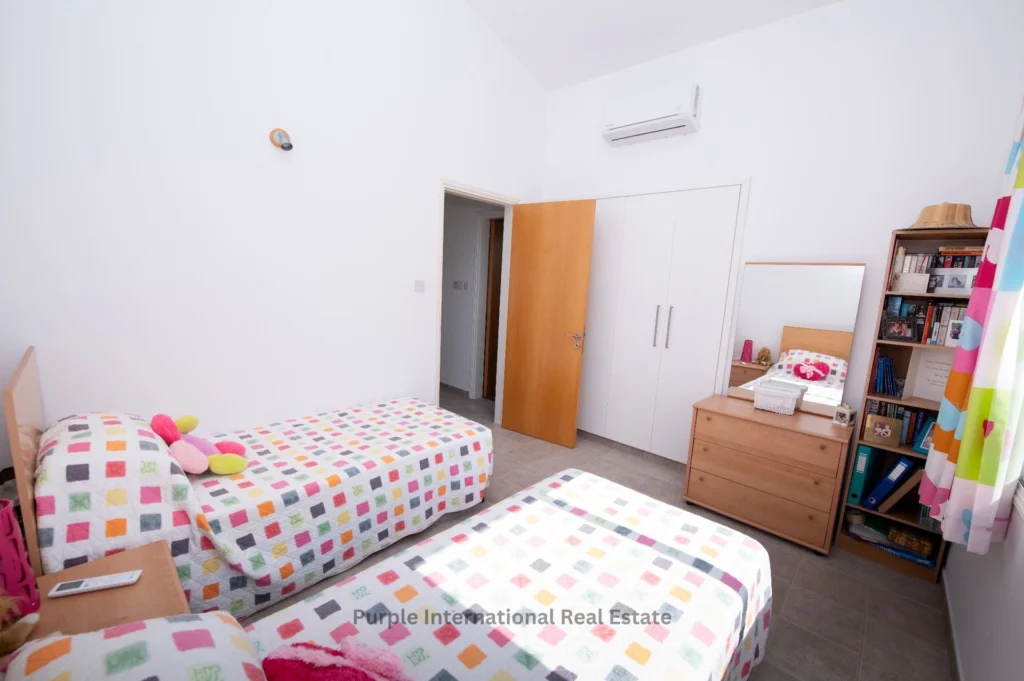 Outside, you’ll find a private pool set within a low-maintenance garden, providing the perfect retreat for outdoor living. The property also includes a driveway with space for two cars, gas central heating, air conditioning, ceiling fans, and ample storage space.