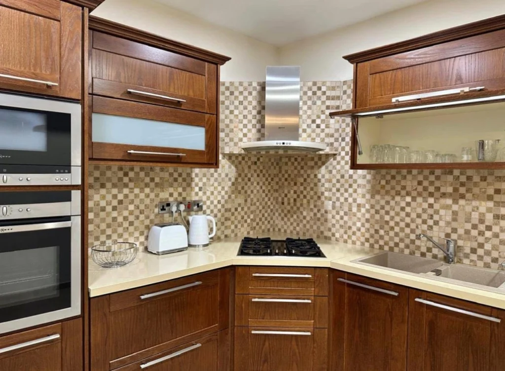 The apartment comes fully furnished and equipped with everything needed for immediate move-in. It features a bright and airy living area, a well-appointed kitchen with modern appliances, three generously sized bedrooms, and ample storage space throughout.