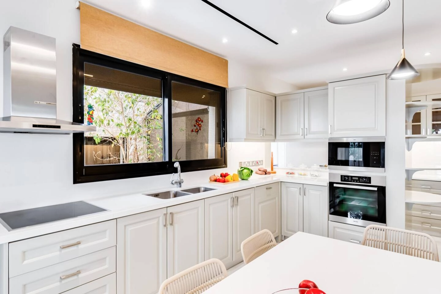 Luxury 5-bedroom villa for rent, located in Tala, Paphos. There are five bedrooms and 4 bathrooms, a large spacious living room and an office, and air conditioning in each room. The villa was completely renovated in 2025, with new furniture and appliances. There is central heating. The villa is located on a stunning plot with a private outdoor pool, beautifully decorated garden, barbecue area and outdoor dining area. The covered parking can accommodate up to four cars. The windows offer views of the sea and mountains. Villa Adolina is conveniently located just a three-minute drive from various restaurants and within walking distance from Tala Municipal Park. It offers the perfect combination of tranquility and accessibility for an unforgettable vacation.