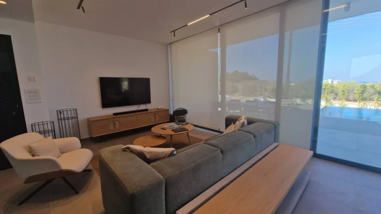 For sale a new 4 bedroom villa in an elite residential complex located in Protaras, a 5-minute drive from the famous Blue Flag beach – Fig Tree Bay. The project consists of 10 villas, each of which, thanks to modern architecture and advanced construction technologies, gives the feeling of an endless, comfortable vacation. Private swimming pool, terraces, landscaping, roof deck and covered parking. White facades contribute to an even greater mood, and facing made of natural stone and wood gives a homely and luxurious look. The villas are located on a hill, which gives an unobstructed panoramic view.