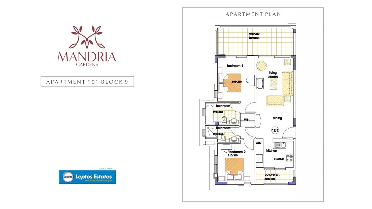 Mandria Gardens Apartment No. 101 is located in an exceptional seafront development that offers one and two bedroom apartments and penthouses and three bedroom detached villas. There are two communal swimming pools one of which is heated during the winter months set in beautiful and spacious landscaped gardens. The project also features a private clubhouse for residential use. The traditional styles fixtures and finishes have been carefully selected to retain the charm and authenticity of the region. Mandria Gardens offers exceptional value for money particularly for those wanting to invest in property as a primary secondary or buy to let investment that is close to golf resorts hotels amenities services places of interest and centrally located between Paphos and Limassol .